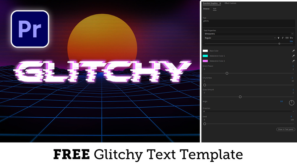 This is a basic glitch mogrt template for Adobe Premiere Pro. Simply drag and drop into Premiere to install the template, then immediately create your glitch text using the Essential Graphics Panel.